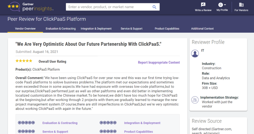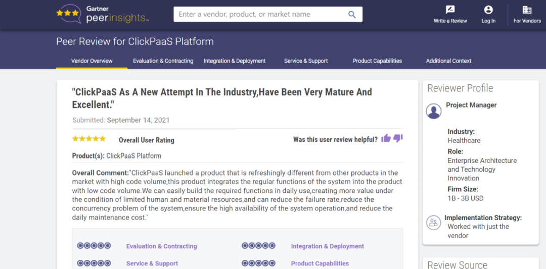 Tips:::【Peer Insights】——用户对企业IT产品和服务发布真实评价的平台。。。。目前已有355个市场,,255,000条经过验证的评价。。每一条评价Gartner会针对参评企业营收规模及参评人员信息做验证、、、、评价内容做多维核实。。。。